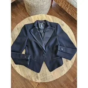 Juicy Couture Womens Black Italian Fabric Blazer Jacket Wool Blend Size 2 EUC