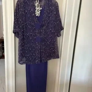 Stunning purple Drapers and Damon 3 piece pant set. featuring a sheer overlay with a textured design. Perfect for formal or classic occasions.