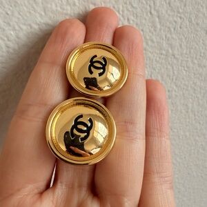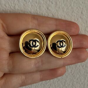 Classic round gold-tone earrings featuring the iconic black CC logo at center. High-polish finish with textured backs, post-back closure. Timeless, elegant, and easy to wear with anything. Vintage and excellent condition.