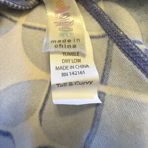Vibrant LuLaRoe Tall & Curvy leggings. One pair features a multicolor geometric pattern. The other pair has a striking blue and yellow design. Perfect for a bold look. New and smoke free, pet free location.