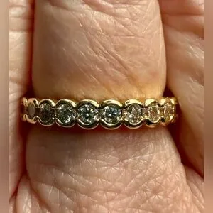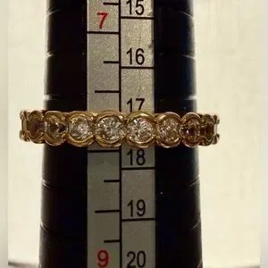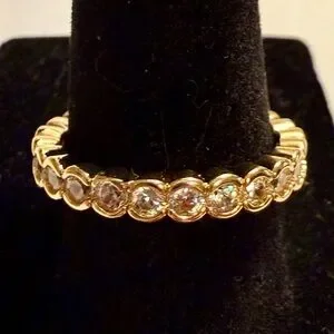 Ring - sz 8 - gold tone band with clear crystals - new! Dainty - classic. Stackable. Smoke free home.