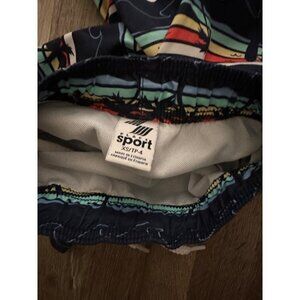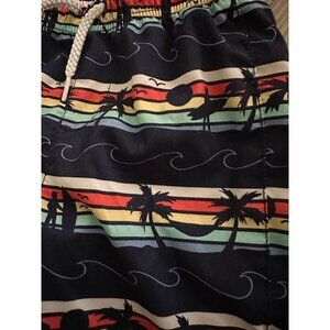 Palm tree tropical waves youth boy bathing suit swim trunks
