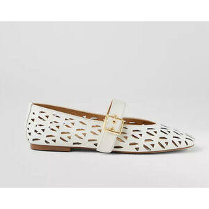 Ann Taylor White Gold Perforated Buckle Ballet Flats - 9M