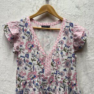 Vineyard Vines Martha's Mini Dress Womens Medium Pink Blue Floral Flutter Sleeve
