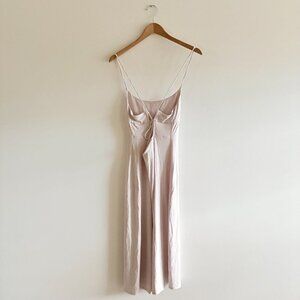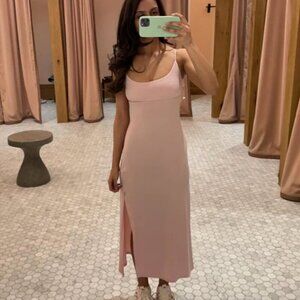 Aritzia Wilfred Dreamweaver Midi Slit Tie Back Dress Pale Pink Size Medium