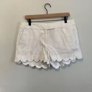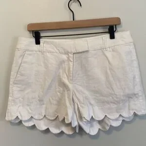 J. Crew White Partial Linen Scalloped Edge Hem Shorts Size 8