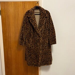 Stylish leopard print coat. Soft and cozy teddy fabric. Perfect for a bold look.