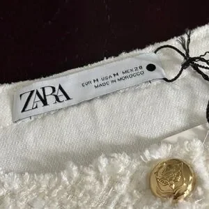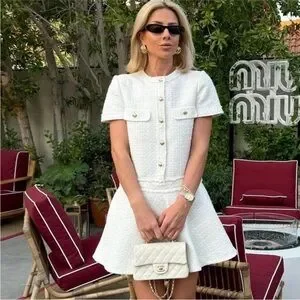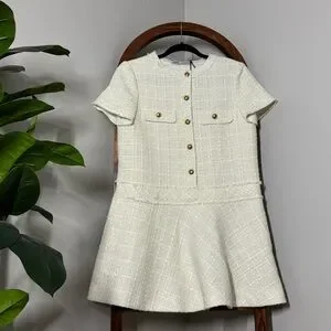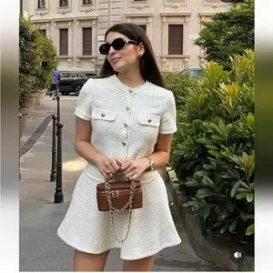 Zara Cream Tweed Mini Dress with Gold Buttons
