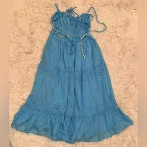NEW FREE PEOPLE Taking Sides Tiered Cotton Maxi splash Blue Dress sz M