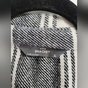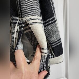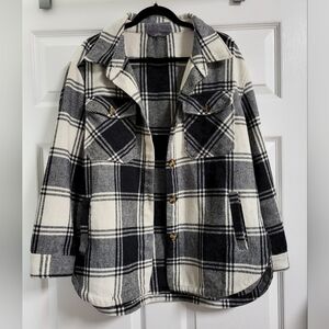 Shacket Plaid Button-Up in Black and White Double Button Pockets Size L