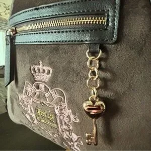 Juicy Couture Velour Backpack Brown Crest Logo Heart Key Charm NWT Y2K
