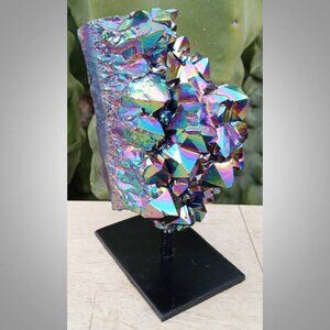 ❤️ titanium covered AMETHYST stone crystal on stand #1