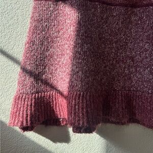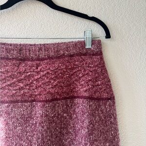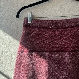 Chic burgundy knit skirt by Prana. A-line design with textured pattern. Ideal for versatile styling.