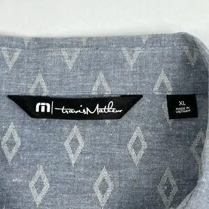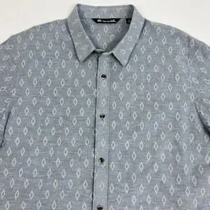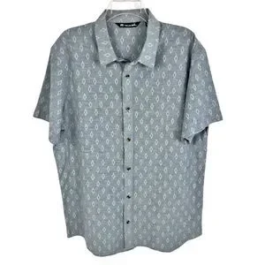 Travis Mathew Blue Gray Diamond Print Short Sleeve Button Down Shirt Men’s XL