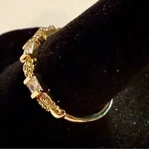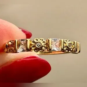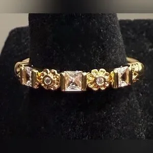 Ring - size 8-8.25 - gold tone w/ clear crystals - tiny daisies - New! Smoke free home.