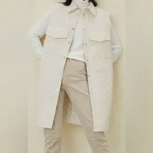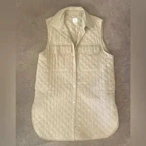 H&M quilted vest in khaki. Long vest, snaps, side and front pockets. Soft, comfy, very fun! Oversized XL. Gently used. Smoke-free home.
