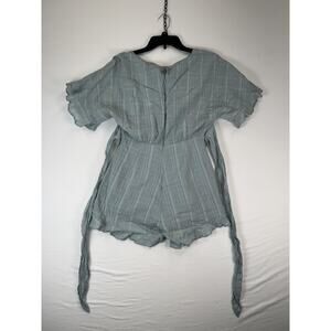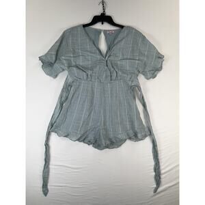 Pink Lily Romper Womens Medium Green Striped Gauze Short Sleeve Tie Waist Ruffle
