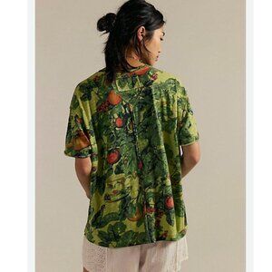 We The Free Sunshade Tee Slub Top Green Novelty Botanical Print Sz L Boho