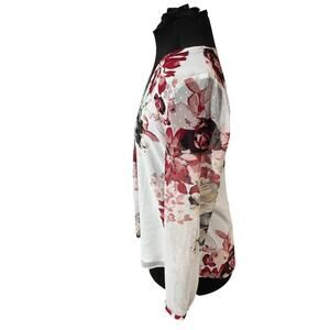 White House Black Market Floral Blouse Lined Sheer Sleeves Womens Size 10