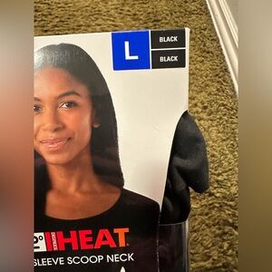 Experience warmth and comfort with this black long sleeve tee. Ideal for layering or standalone wear. Comes in a convenient 2 pack. Brand new. Box is a little ripped, just took one out to try on.