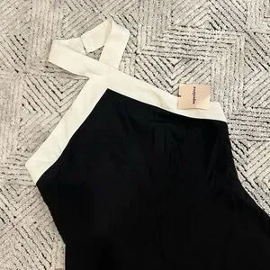 This chic black and white halter dress is perfect for any occasion. Its elegant design and classic colors make it a versatile addition to your wardrobe.