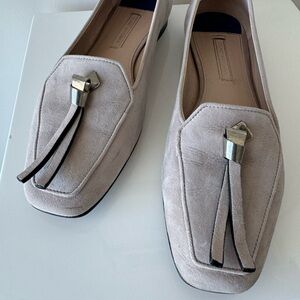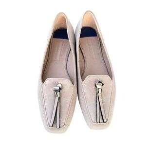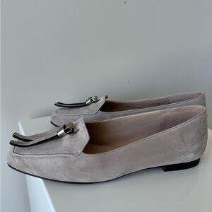 Stuart Weitzman Cream Loafers with Silver Accent