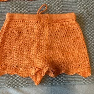 Stylish orange crochet set featuring a button-up crop top and matching shorts. Perfect for a casual day out. Never worn brand new.