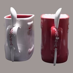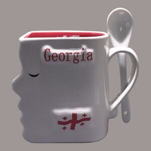 Georgia Tbilisi Kissing Mugs with 2 Teaspoons – Ceramic Red & White – Collectible – NWOT