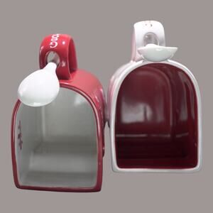 Kissing Mugs w/ 2 Teaspoons Ceramic Red & White Gift Valentine NWOT