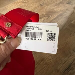 Vibrant red wristlet with Lululemon branding. Includes a detachable keychain.
