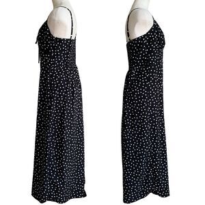 Black White Polka Dot Midi Sundress Size M Adjustable Straps Side Zip Smock