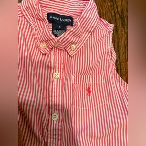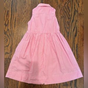 Adorable Ralph Lauren dress with pink and white stripes. Sleeveless and button-down style. Perfect for casual outings.