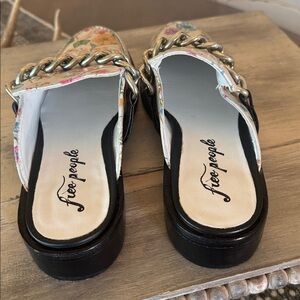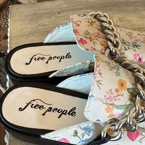 Free People new Floral Vida Chain leather slip on Mules - Ivory and Multicolor Euro 40 = 9.5-10 Women’s.
