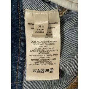 This sale is for one (1) pair of We the Free wide-leg, high-rise jeans, size M. The jeans have a faded medium blue wash.