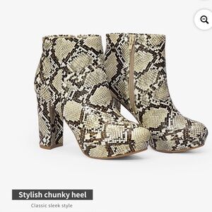 Dream Pairs STOMP AAVETE Slip On Ankle Boots Chunky Heel Side Zipper Snake print