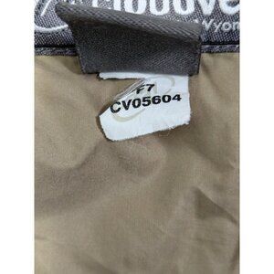 In good pre-owned condition but shows some signs of wear and use. Missing hood. Has a tear and seam unraveling around where the hood used to be. Hood zipper also coming off. Some blemishes/stains. Bit of debris on hook and loop fasteners. Please see all photos and measurements for best description (measurements included in photos).