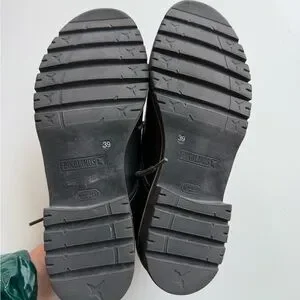 Pikolinos Women's Leather Vicar Oxford Shoes Black Size EU 39, US 8.5. Good used condition, some creases and scuff marks, a little sole wear - shown in photos. Thick lug sole, heel measures 1 1/3“ tall, ball of foot sole measures 2/3“ tall. Laces to tighten. Leather upper. Please see photos and condition.