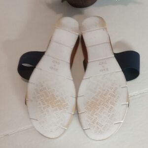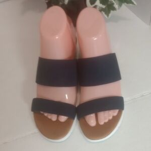 Step out in style with these chic navy blue sandals. Perfect for any occasion, they offer both comfort and elegance.used excellent condition