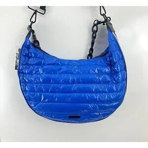 BCBGeneration Blue Quilted Puffer Hobo Bag 2 in 1 Chain Strap Shoulder Bag