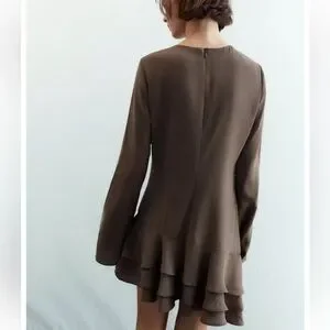 Flowy Ruffled Mini Dress, Chocolate Brown, Zara, M, NWT