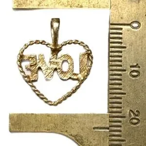 Elegant vintage gold heart pendant with 'LOVE' design. 14K solid gold stamped, VG designer. Perfect for adding a touch of romance to any outfit.