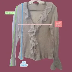 Soft, feminine Ann Taylor cardigan featuring delicate ruffle detailing down the front and a flattering, lightweight fit. A perfect layering piece for work or everyday wear with an easy, polished feel.