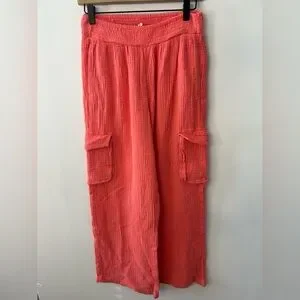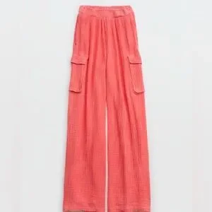 Aerie Women’s Haute Coral Gauzy High Waisted Cargo Pants, Size XS.