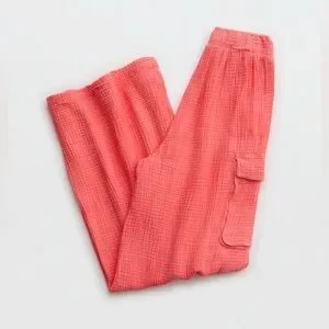 Aerie Women’s Haute Coral Gauzy High Waisted Cargo Pants, Size XS
