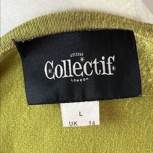 Collectif Green Sweater with Monstera Leaf Appliqué