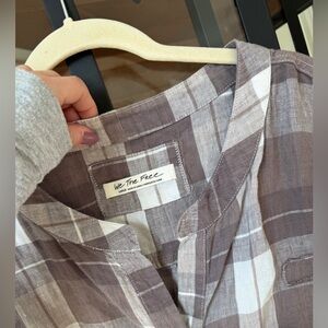 We The Free People button down tunic shirt plaid Summer Serenade Linen Top loose