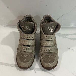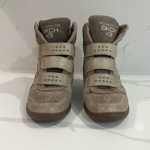 SKECHERS SKCH+3 Leather Hidden Wedge Ankle Booties Dark Taupe size 5.5