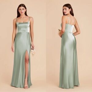 BIRDY GREY Satin Side Slit Maxi Gown Bridesmaid Mint Green Dress Sz XXL