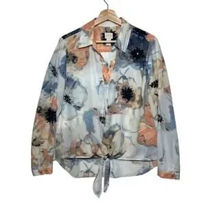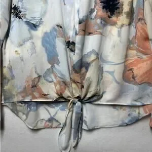 Chico’s Watercolor Floral Front Knot Long Sleeves Top Sz 2 / L Casual Colorful