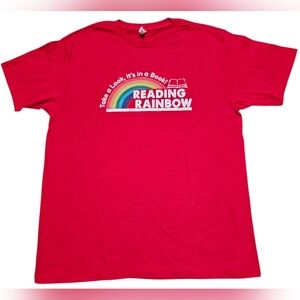 New with out tags! Bright red men's large t-shirt featuring Reading Rainbow graphic.